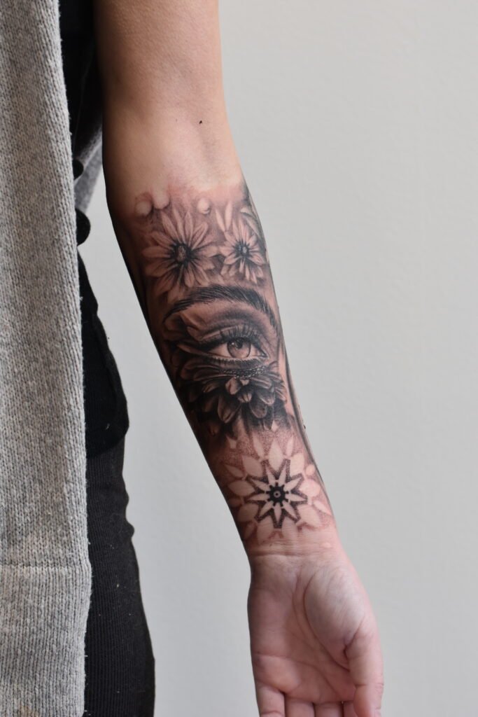 Hay que destacar también su dominio en los estilos del microrealimo, mandala, puntillismo, black work, estilo floral y línea fina
